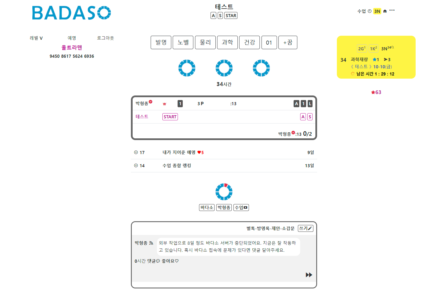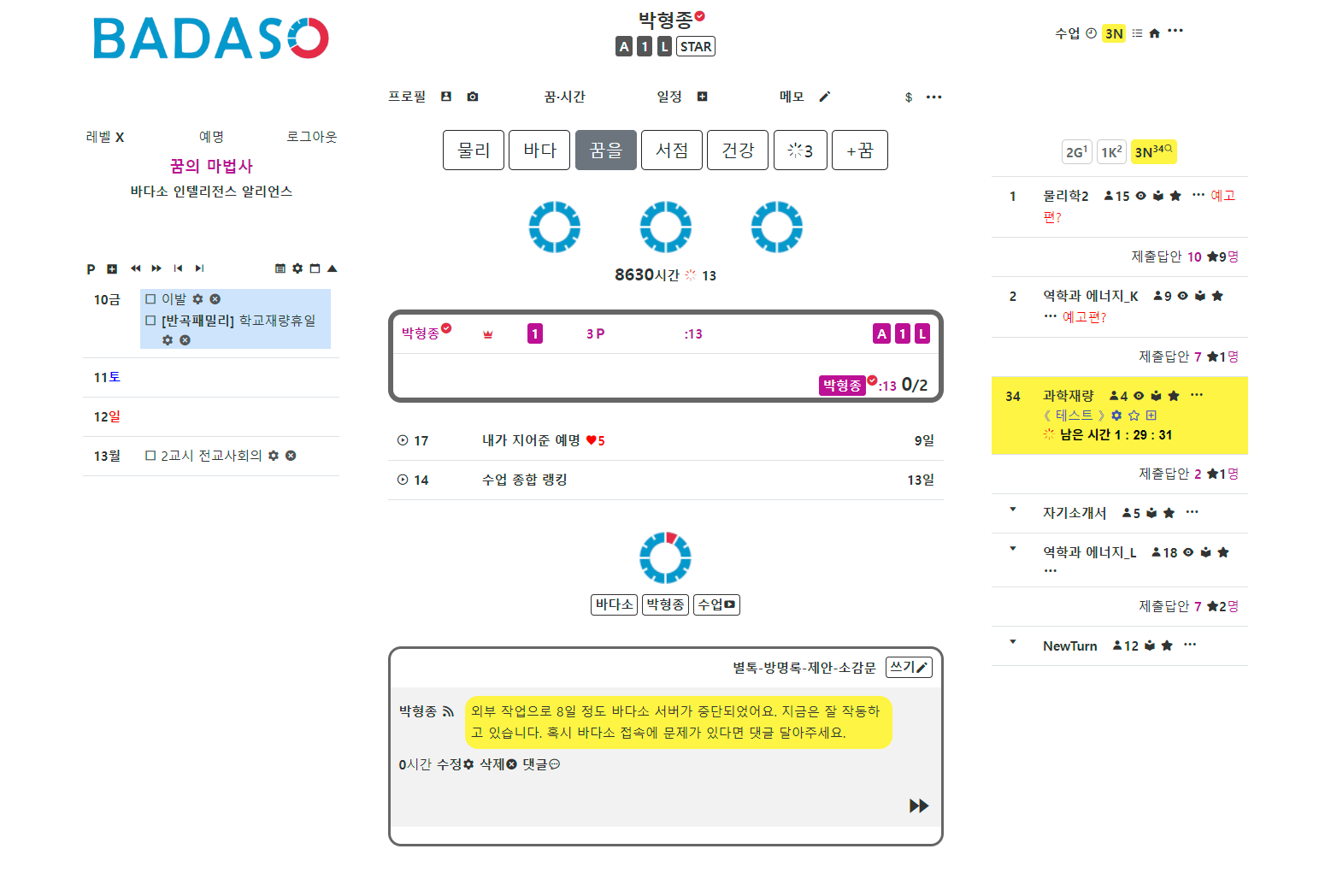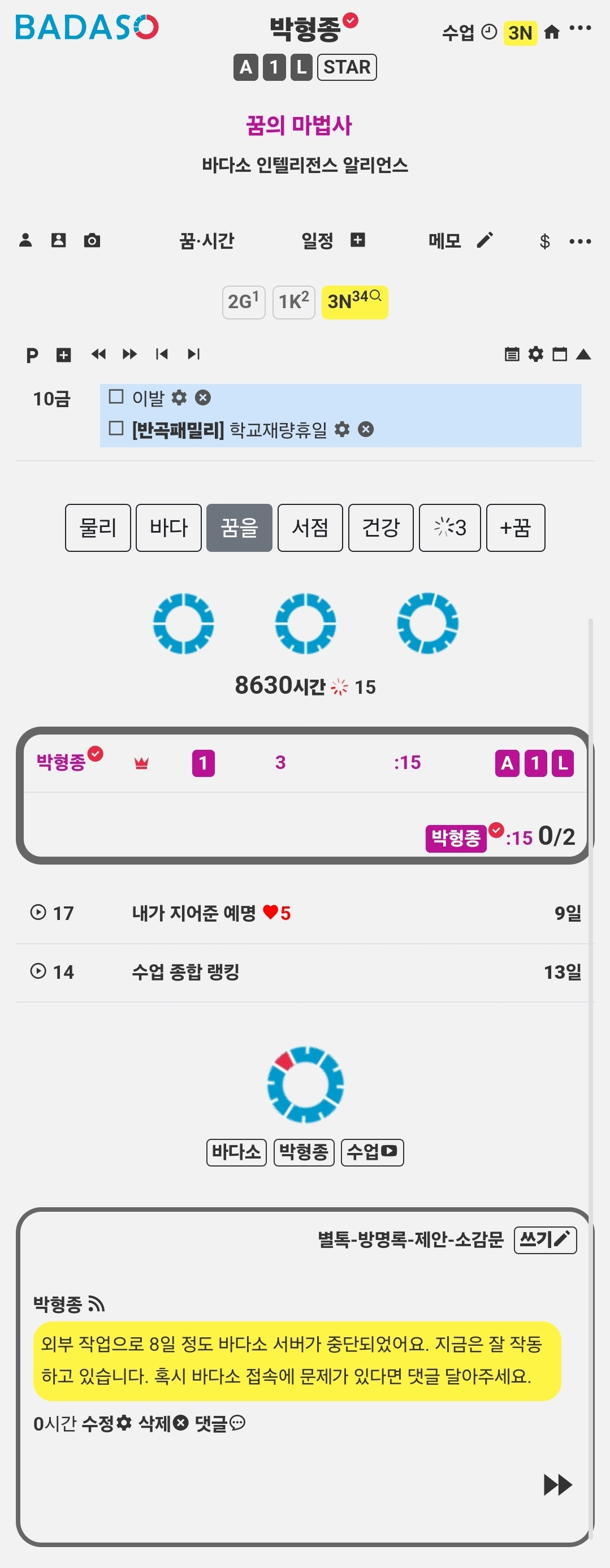 ¹Ù´Ù¼Ò°¡ ÀÖ´Â ¼¼»ó 10¿ù 1ÀÏ ¹ãºÎÅÍ ¿ÜºÎ ÀÛ¾÷À¸·Î 8Àϰ¡·® ¹Ù´Ù¼Ò¿¡ Á¢¼ÓÇÒ ¼ö ¾ø¾ú´Ù. 2007³â ¹Ù´Ù¼Ò¸¦ ¸¸µç ÀÌÈÄ 18³â ¸¸¿¡ óÀ½ ÀÖ´Â ÀÏÀ̾ú´Ù. ¹Ù´Ù¼Ò°¡ ¾ø¾ú´ø ±ä ¿¬ÈÞ¿¡ Àλ絿 È£ÅÚ¿¡¼ ¹¬À¸¸ç 1¹Ú 2ÀÏ·Î ¼¿ï ±¸°æÀ» ´Ù³à¿À°í, Ãß¼® Àü³¯¿¡´Â ¾î¸Ó´ÔÀ» ºÆ·¯ ÀÎõÀ» °¬´Ù ¿Ô°í, ±×Á¦´Â ó°¡°¡ ÀÖ´Â ´ëÀü¿¡ ³»·Á°¬´Ù ¿Ô´Ù.