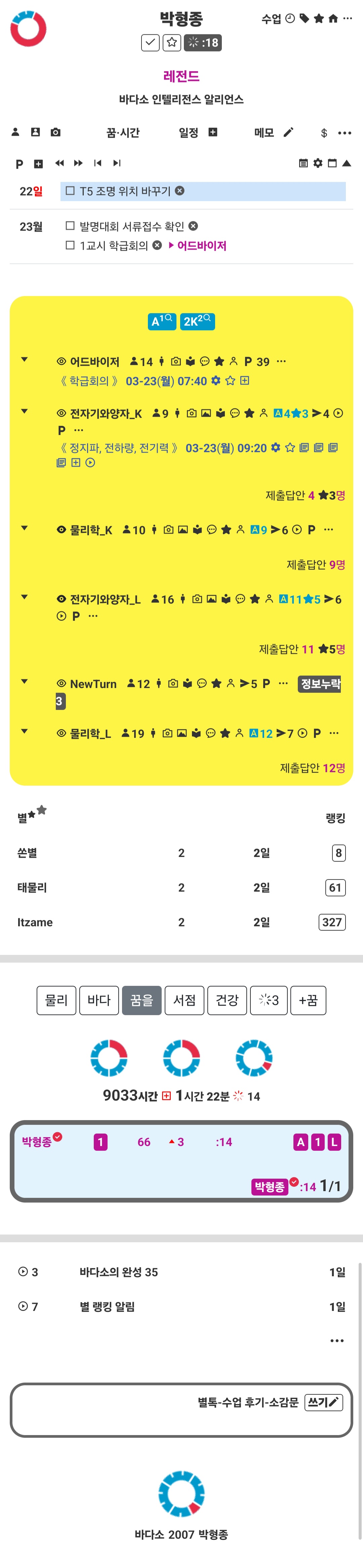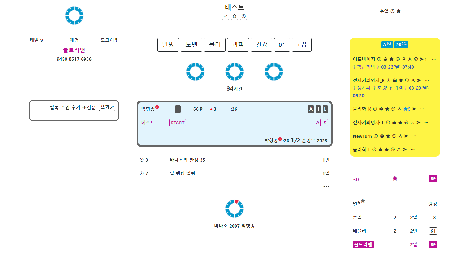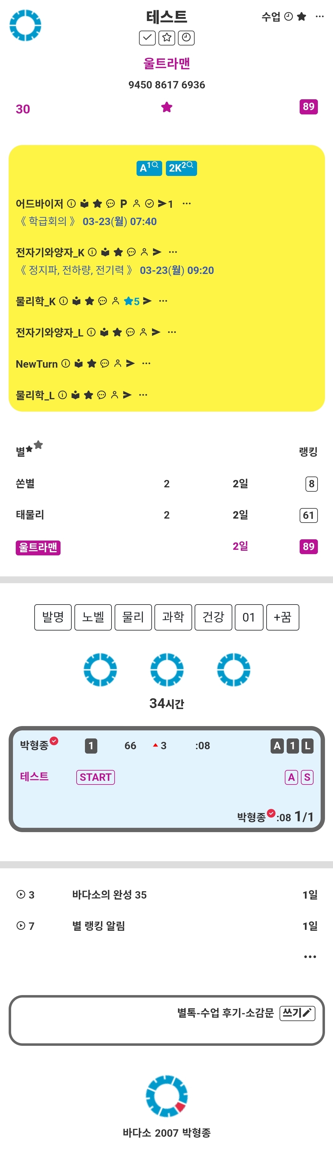 »õº°, ÀüÀÚÄ¥ÆÇ ÈÀÌÆ®º¸µå ¼ö¾÷ ¸Þ´º¿¡ »õº°À» Ä÷¯¹Ú½º·Î º¸¿©ÁÖ´Â ¸µÅ©¸¦ ³Ö¾ú°í, Ä÷¯¹Ú½º¿¡¼´Â ÇØ´ç °ú¸ñÀÇ º°À» ³ë¶õ ¹è°æ¿¡ ³ªÅ¸³»¾ú´Ù. ±×¸®°í °ú¸ñ ÀÏÁ¤ÀÌ ÀÖ´Â °æ¿ì¿¡¸¸ °ú¸ñ ÆäÀÌÁö¿¡ ÀÏÁ¤À» º¸¿©ÁÖµµ·Ï Çß´Ù.