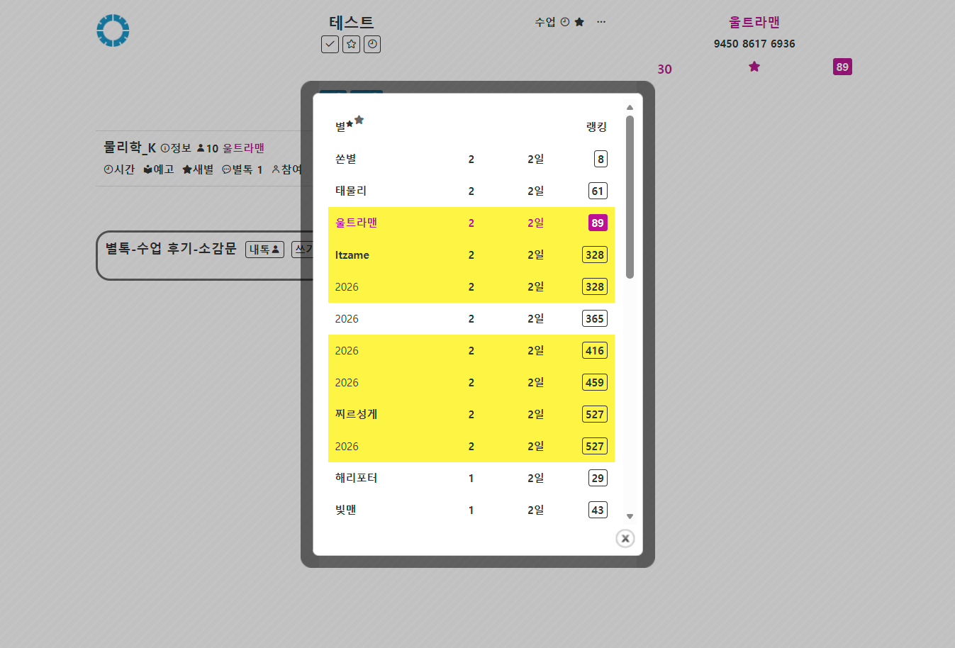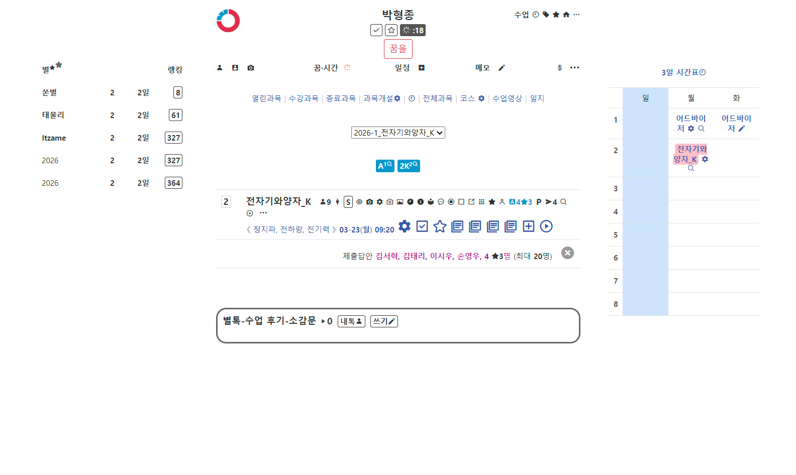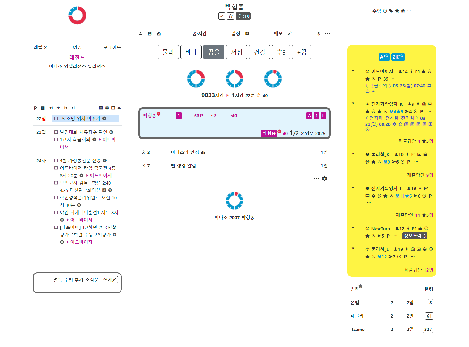 »õº°, ÀüÀÚÄ¥ÆÇ ÈÀÌÆ®º¸µå ¼ö¾÷ ¸Þ´º¿¡ »õº°À» Ä÷¯¹Ú½º·Î º¸¿©ÁÖ´Â ¸µÅ©¸¦ ³Ö¾ú°í, Ä÷¯¹Ú½º¿¡¼´Â ÇØ´ç °ú¸ñÀÇ º°À» ³ë¶õ ¹è°æ¿¡ ³ªÅ¸³»¾ú´Ù. ±×¸®°í °ú¸ñ ÀÏÁ¤ÀÌ ÀÖ´Â °æ¿ì¿¡¸¸ °ú¸ñ ÆäÀÌÁö¿¡ ÀÏÁ¤À» º¸¿©ÁÖµµ·Ï Çß´Ù.